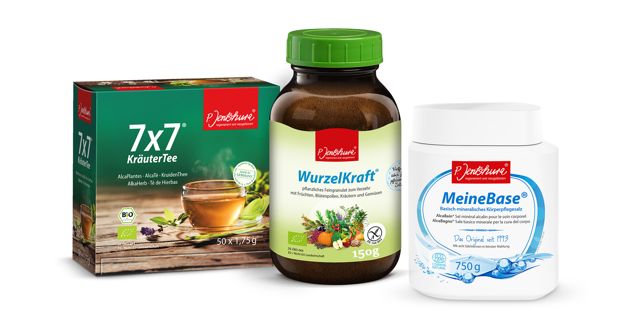 Gönnen Sie Ihrem Körper eine wohltuende Auszeit und bringen Sie Ihren Säure-Basen-Haushalt sanft wieder ins Gleichgewicht – mit der bewährten Basenkur von P. Jentschura. Die Kombination aus dem Kräutertee 7×7 KräuterTee, dem basischen Körperpflegesalz MeineBase und dem vitalstoffreichen Pflanzenpulver Wurzelkraft unterstützt Ihren Körper auf natürliche Weise bei Regeneration, Entlastung und neuer Energie.
