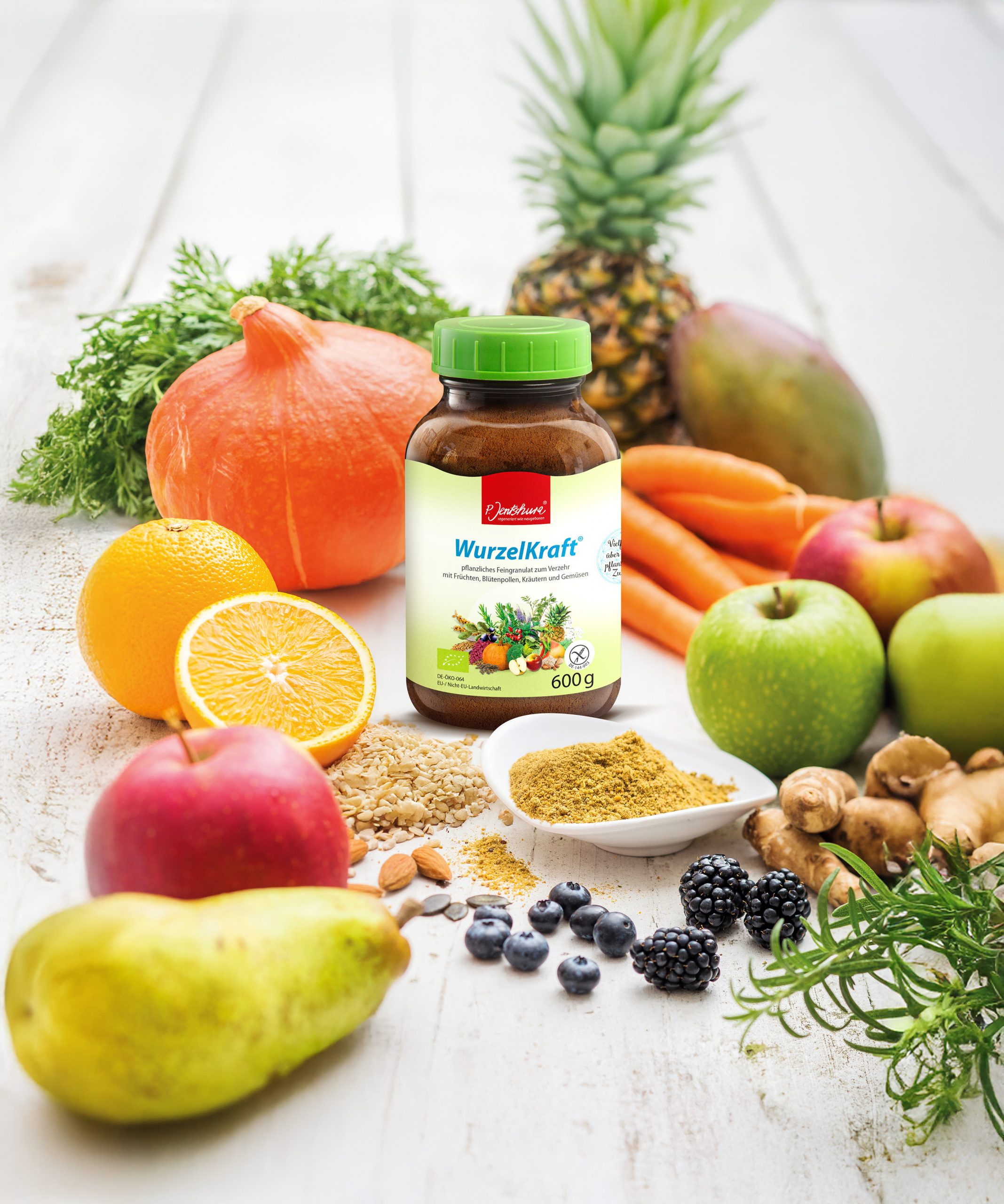 Mit der Kraft von mehr als 100 pflanzlichen Zutaten ist WurzelKraft der verlässliche Rundumversorger und der perfekte Partner, wenn es um eine basische Ernährung geht. Das omnimolekulare Naturlebensmittel unterstützt unser Wohlbefinden für ein Leben in Balance. Löffel für Löffel ein basischer Genuss.